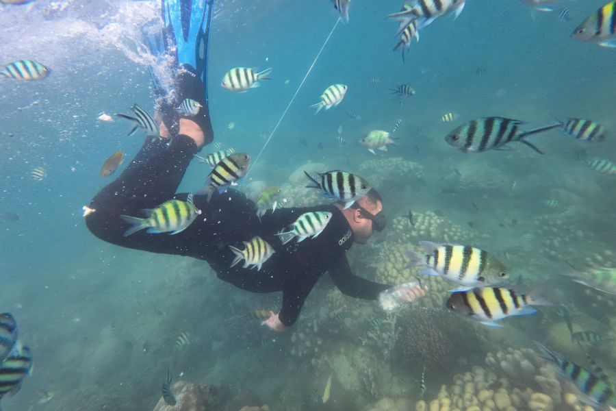 Selain menyaksikan keindahan Pulau Pramuka dari darat, Anda juga harus masuk ke alam bawah lautnya dengan cara snorkeling atau diving. Kekayaan perairan disini tak ada habisnya.